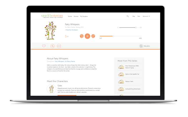 At the top will be our Featured Series. Scroll down to find Stories by Age, Featured Topics, and our Characters!